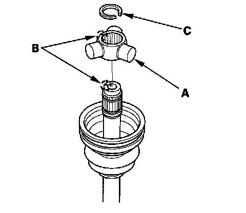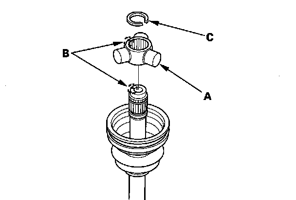 4. Install the new circlip (C) into the driveshaft groove. Always rotate the circlip in its groove to make sure it is fully seated.