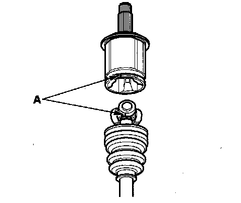 1. Wrap the splines with vinyl tape (A) to prevent damaging the inboard boot.