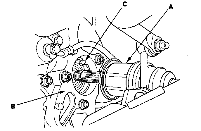 Rear Driveshaft InstallationNOTE: Before starting installation, make sure the mating surfaces of the joint and the splined section are free from dirt or dust.