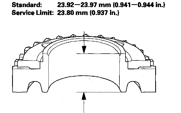 ^ If the thickness is less than the service limit, replace 3rd gear.
