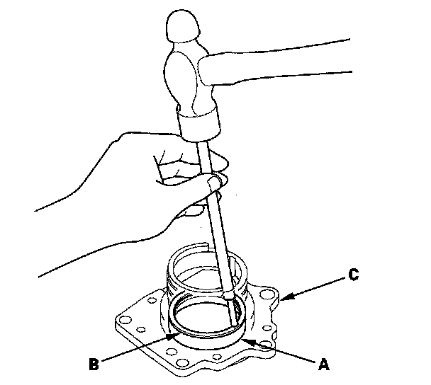 27. Install the new transfer spacer (C) on the transfer output shaft in the direction shown, and install them in the transfer housing.
