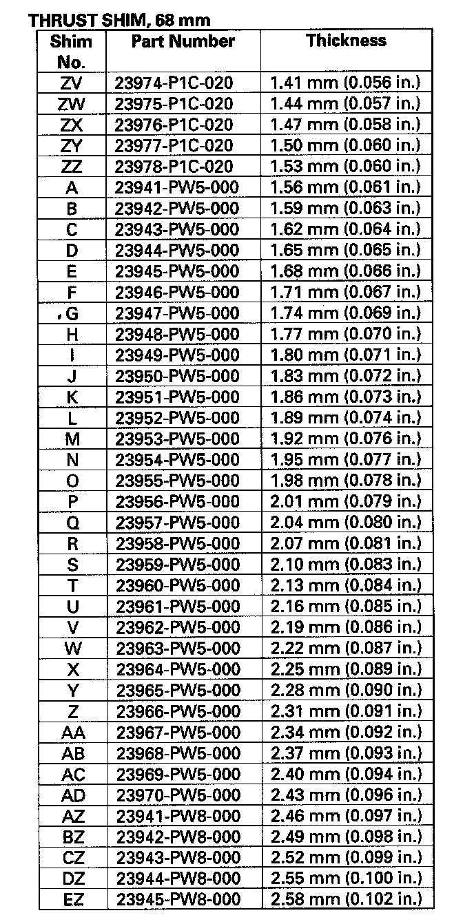 ^ Reduce the thickness of the 68 mm thrust shim by the amount you increased the 25 mm thrust shim.