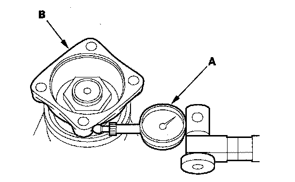 2. Set a dial indicator (A) on the companion flange (B) as shown.