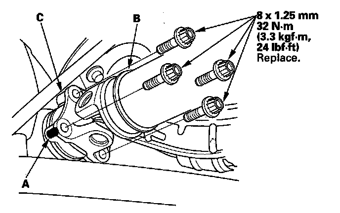 10. If there is a leak, remove the transfer assembly from the transmission , and replace the transfer oil seal and O-ring on the transfer output shaft. If oil seal and O-ring replacement is required, you will need to check and adjust the transfer gear tooth contact, transfer gear backlash, the tapered roller bearing starting torque, and the total starting torque.