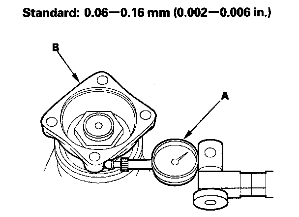 5. Set a dial indicator (A) on the transfer companion flange (B), then measure the transfer gear backlash.