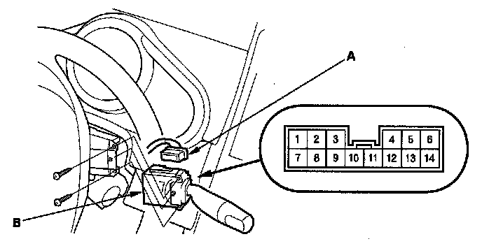 3. Disconnect the 14P connector (A) from the wiper/washer switch (B).