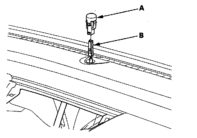 2. Push out the sunlight sensor (A) from behind the dashboard. Disconnect the 2P connector (B) from the sunlight sensor. Be careful not to damage the sensor and the dashboard.