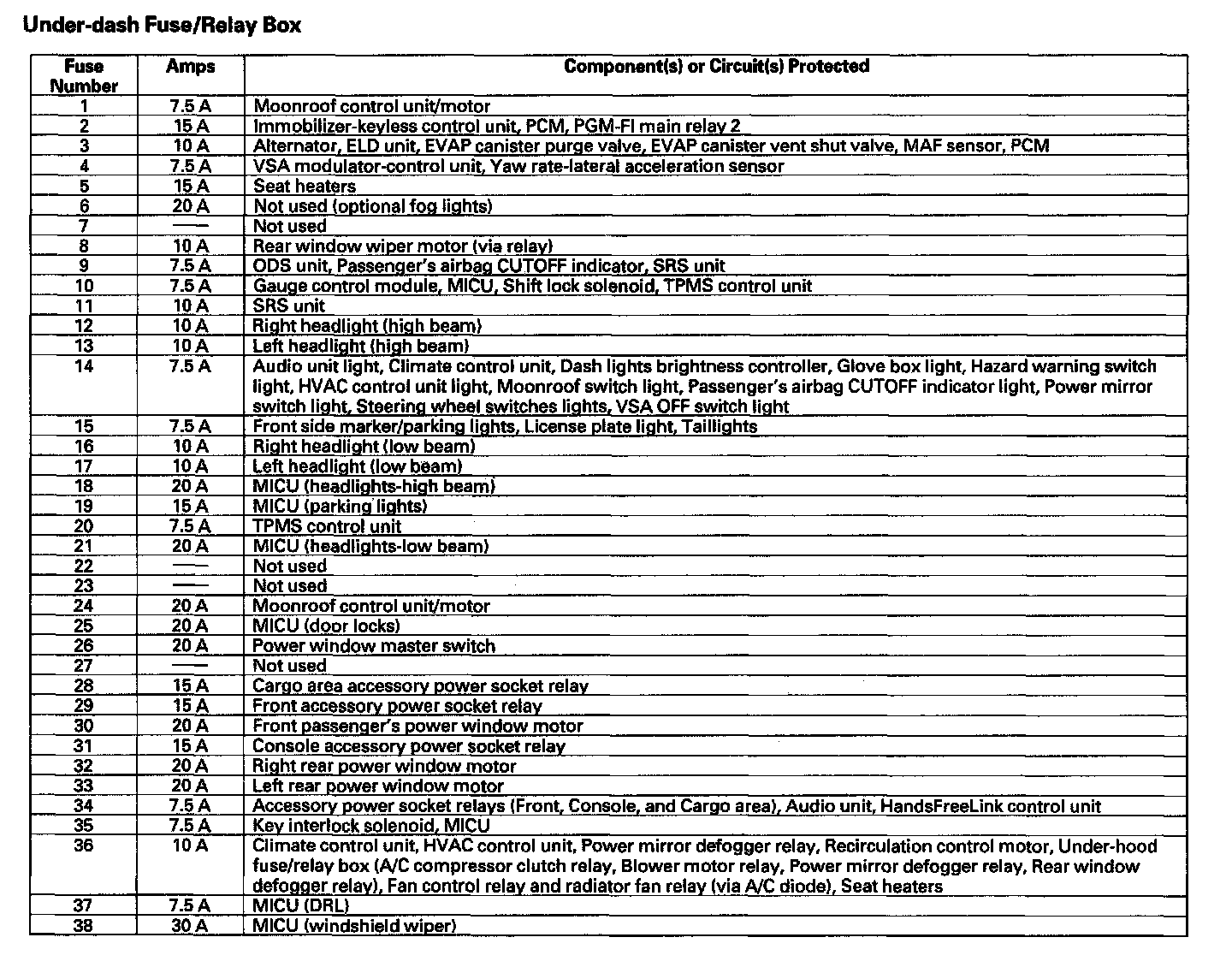 Under-dash Fuse/Relay Box (Part 1):