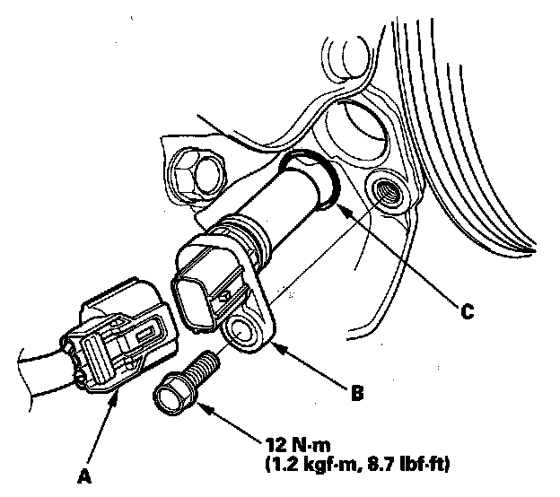 3. Install the parts in the reverse order of removal with a new O-ring (C).