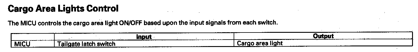 Cargo Area Lights Control