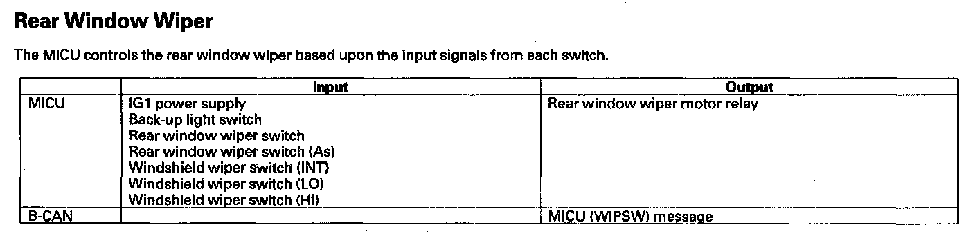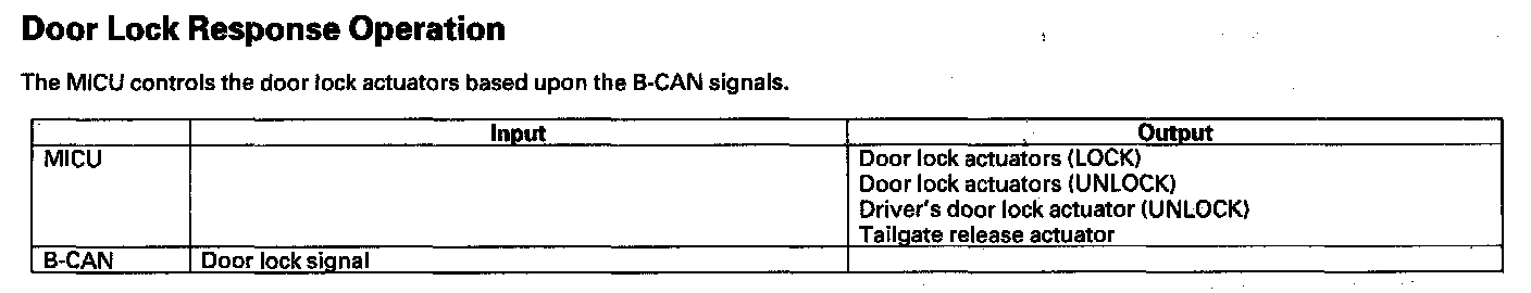 By connecting the HDS to the data link connector (DLC), the HDS can retrieve the diagnostic results from the MICU via a diagnostic line called K-LINE. The K-LINE is distinguished from the CAN line, and connected to the CAN related ECUs. The MICU is a gateway between the HDS and B-CAN related ECUs, and sends B-CAN diagnostic results to the HDS. When performing a function test with the HDS, the HDS sends an output signal through the K-LINE to the MICU. The MICU either relays the request to another ECU, or commands the function its self.