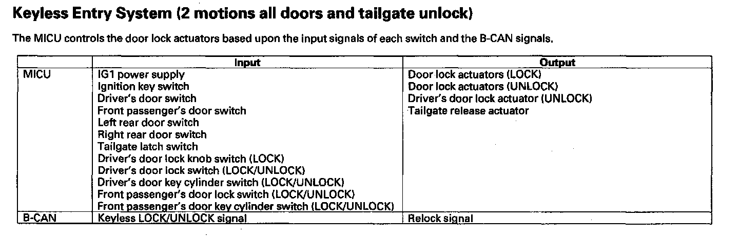 Keyless Entry System (1 motion all doors and tailgate unlock)