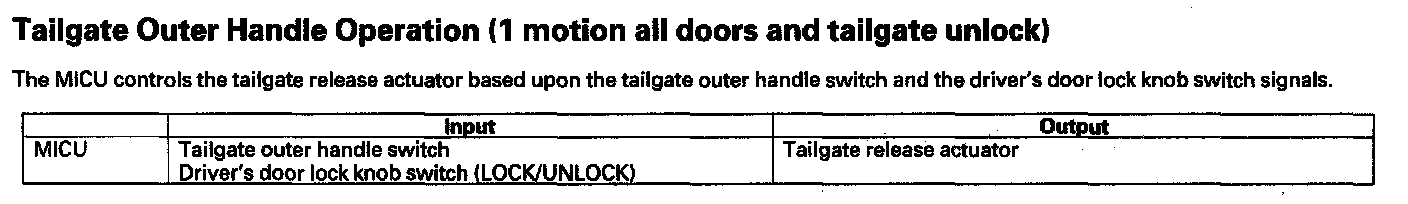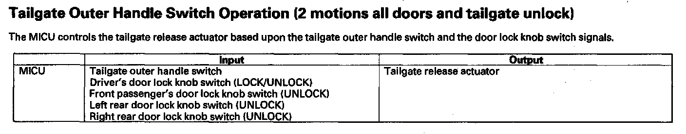 Tailgate Outer Handle Switch Operation (2 motions all doors and tailgate unlock)
