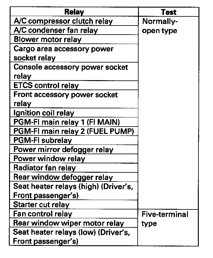 Main Relay (Computer/Fuel System): Testing and Inspection