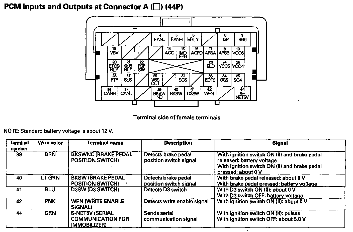 PCM Inputs and Outputs at Connector A (44P) (Part 3):