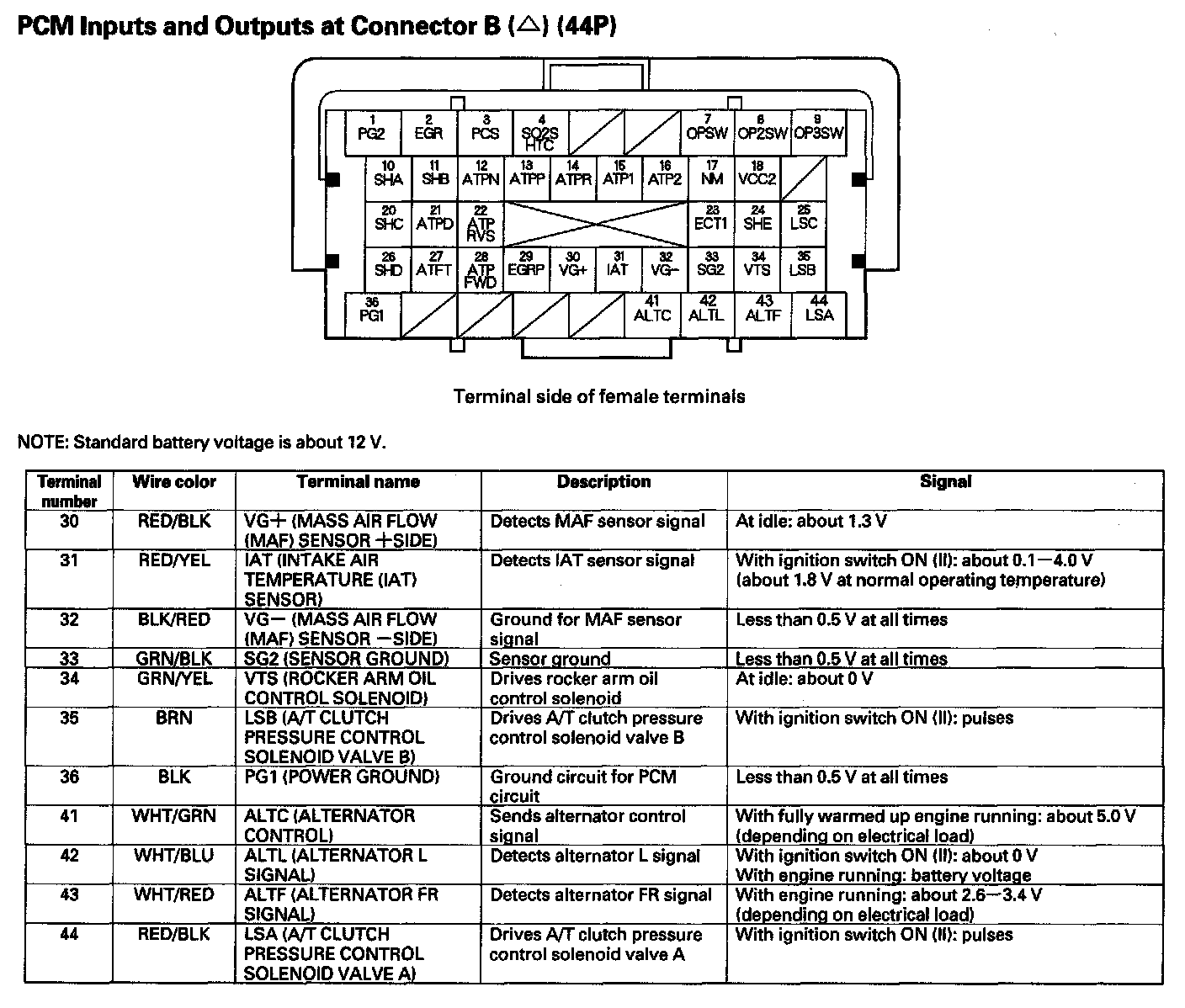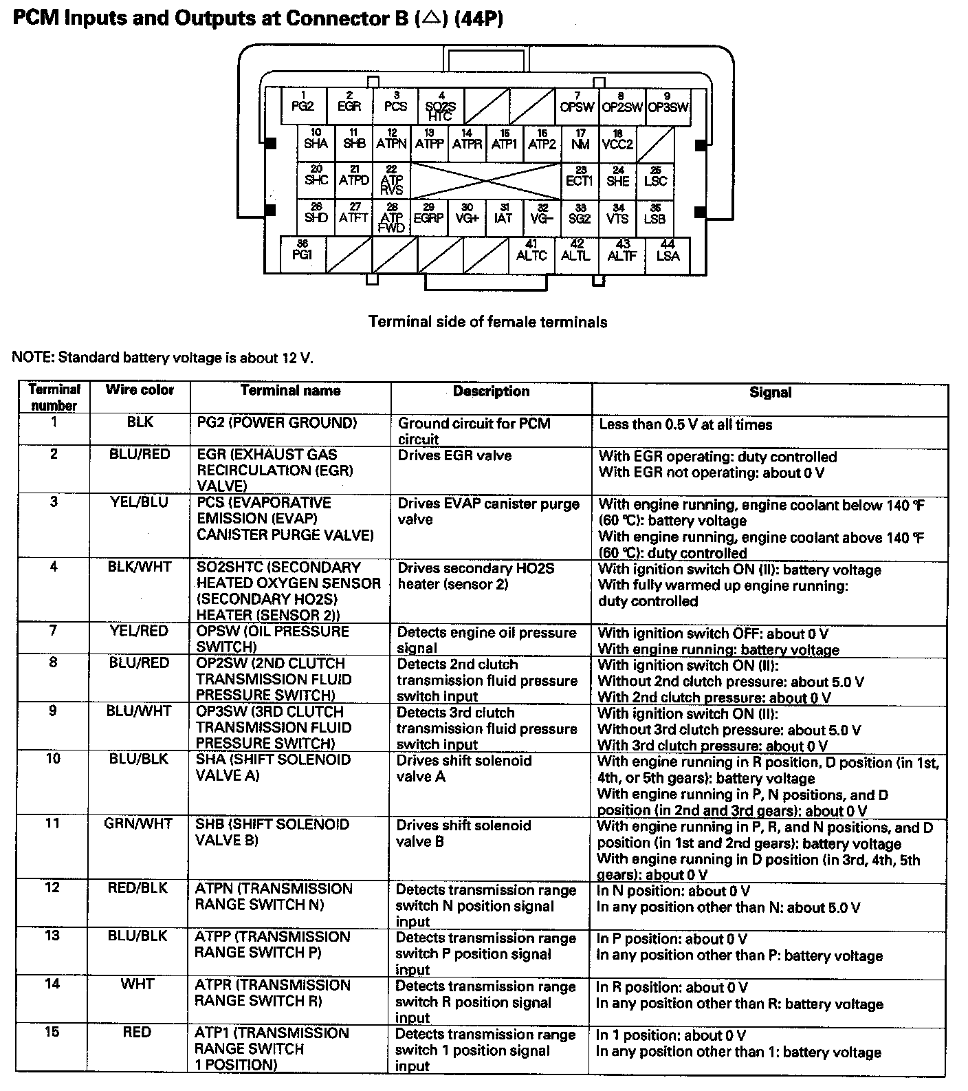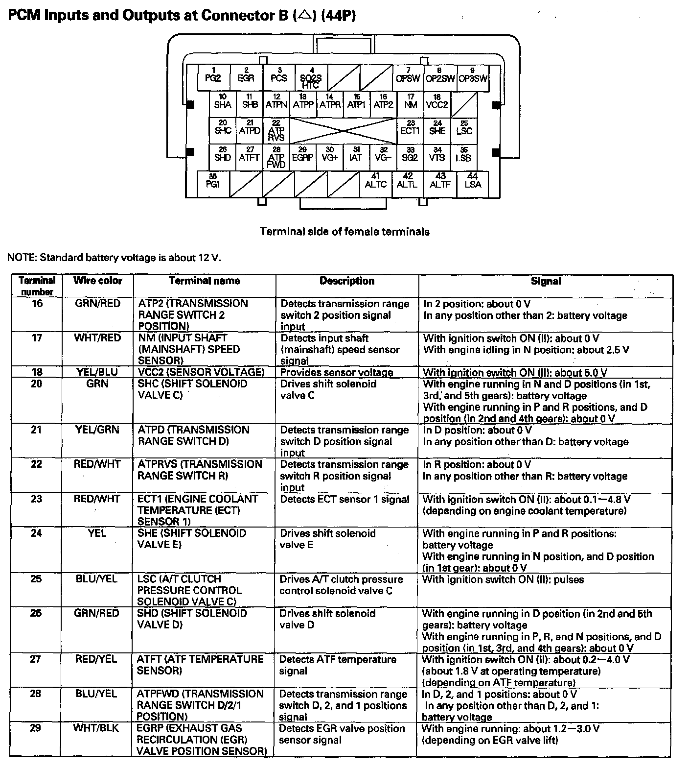 PCM Inputs and Outputs at Connector B (44P) (Part 1):