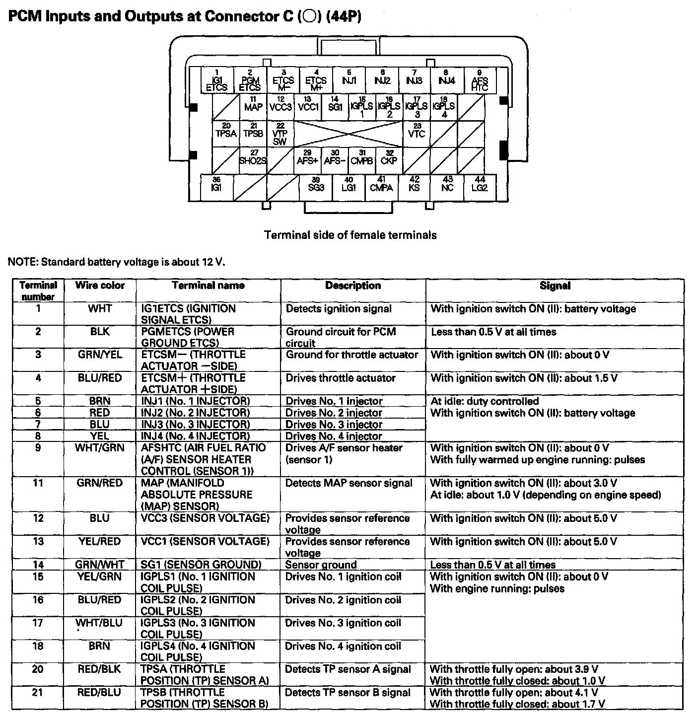 PCM Inputs and Outputs at Connector C (44P) (Part 1):