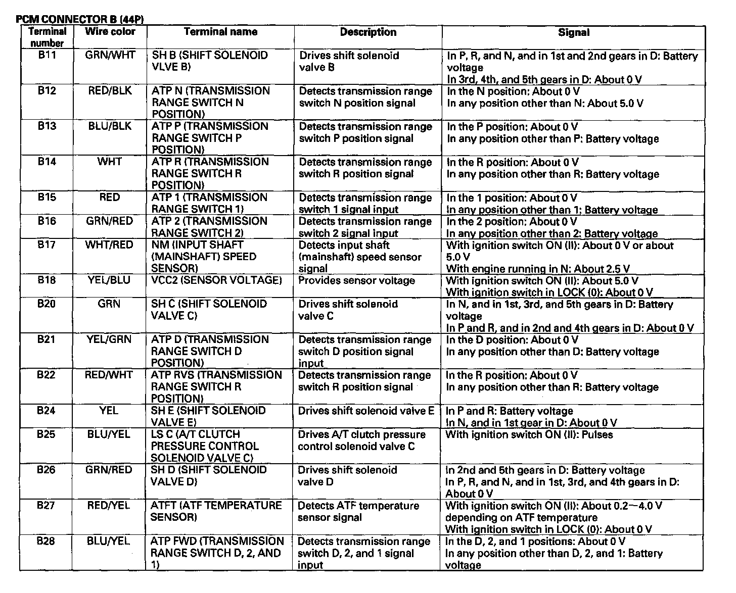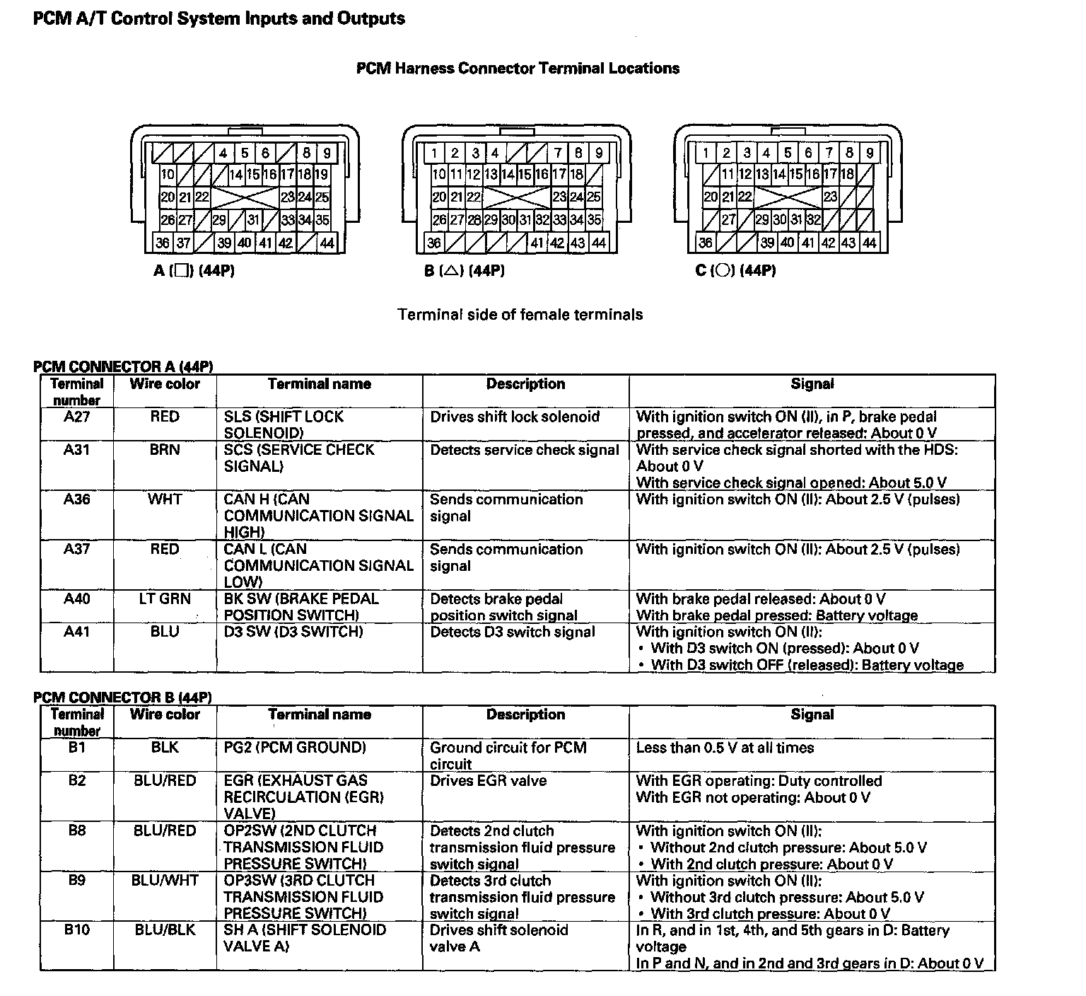 PCM A/T Control System Inputs And Outputs (Part 3):