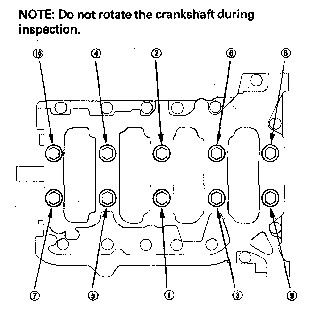 If either diameter is less than 10.6 mm (0.42 in.), replace the cylinder head bolt.