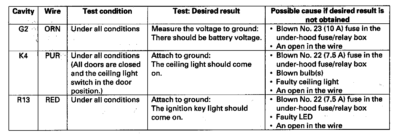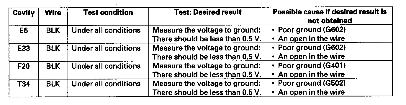 5. Reconnect the connectors to the under-dash fuse/relay box, and make these input tests at the connectors.