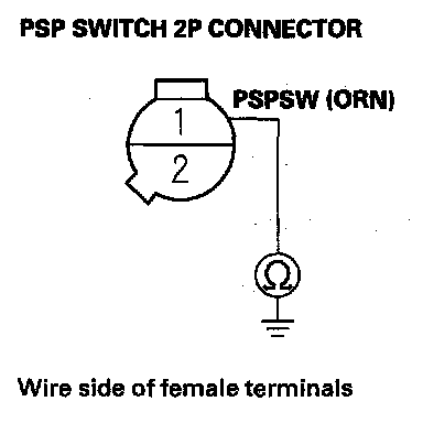 24. Check for continuity between PSP switch 2P connector terminal No. 2 and body ground.