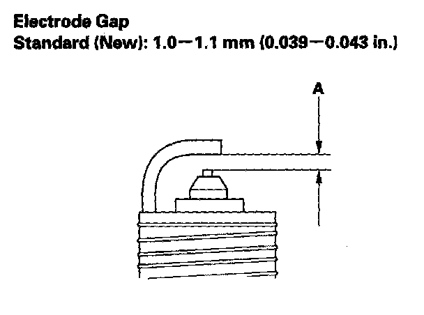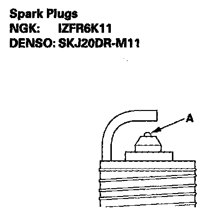 3. Do not adjust the gap (A) of iridium tip plugs; replace the spark plug if the gap is out of specification.