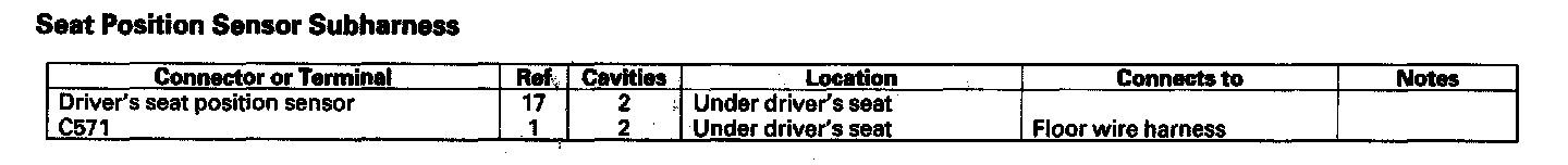 Seat Position Sensor Subharness: