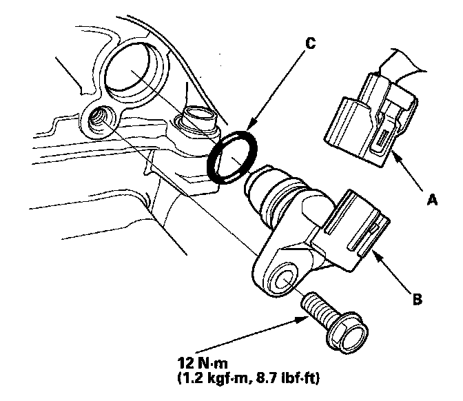 5. Install the parts in the reverse order of removal with a new O-ring (C) coated with clean engine oil.
