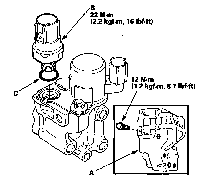 4. Install the parts in the reverse order of removal with a new O-ring (C).