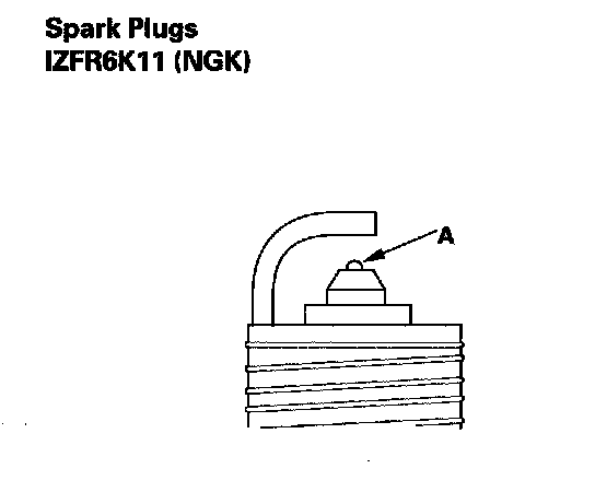 3. Do not adjust the gap (A) of iridium tip plugs, replace the spark plug if the gap is out of specification.