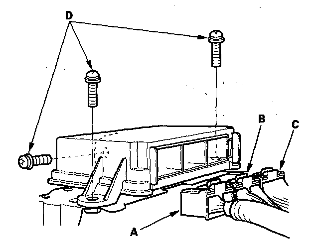 7. Pull down the carpet, then remove the TORX bolts (D) from the SRS unit.