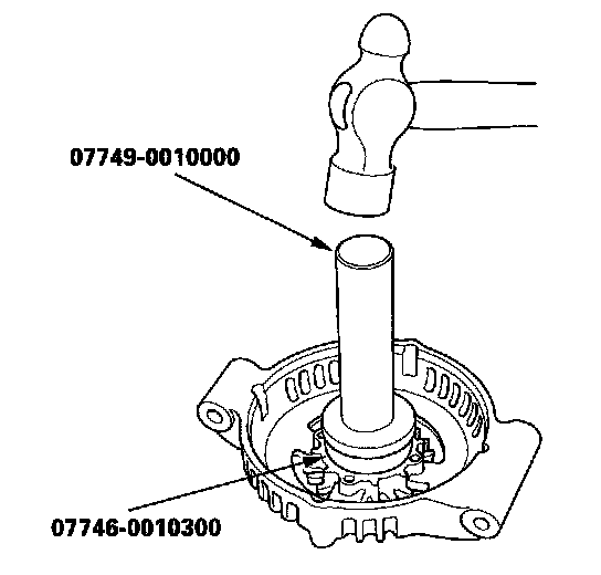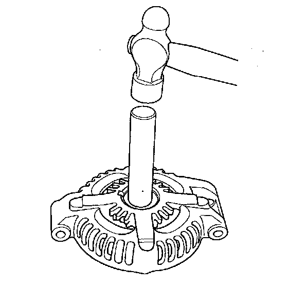 12. Install a new front bearing in the drive-end housing with a hammer, the handle driver, and attachment.