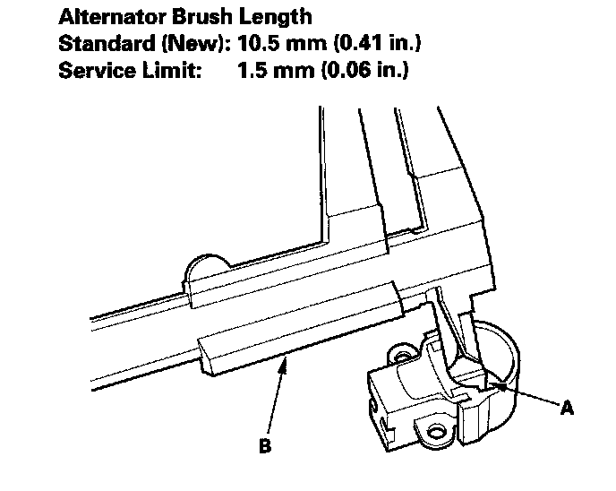 - If either brush is shorter than the service limit, replace the brush holder assembly.