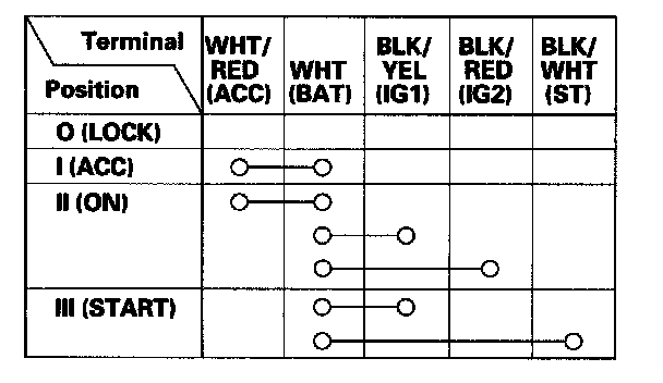 5. If the continuity checks do not agree with the table, replace the steering lock (ignition) switch.