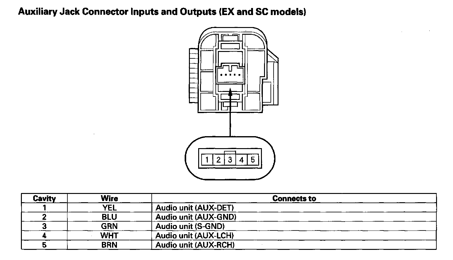Auxiliary Jack Connector Inputs And Outputs (EX And SC Models):
