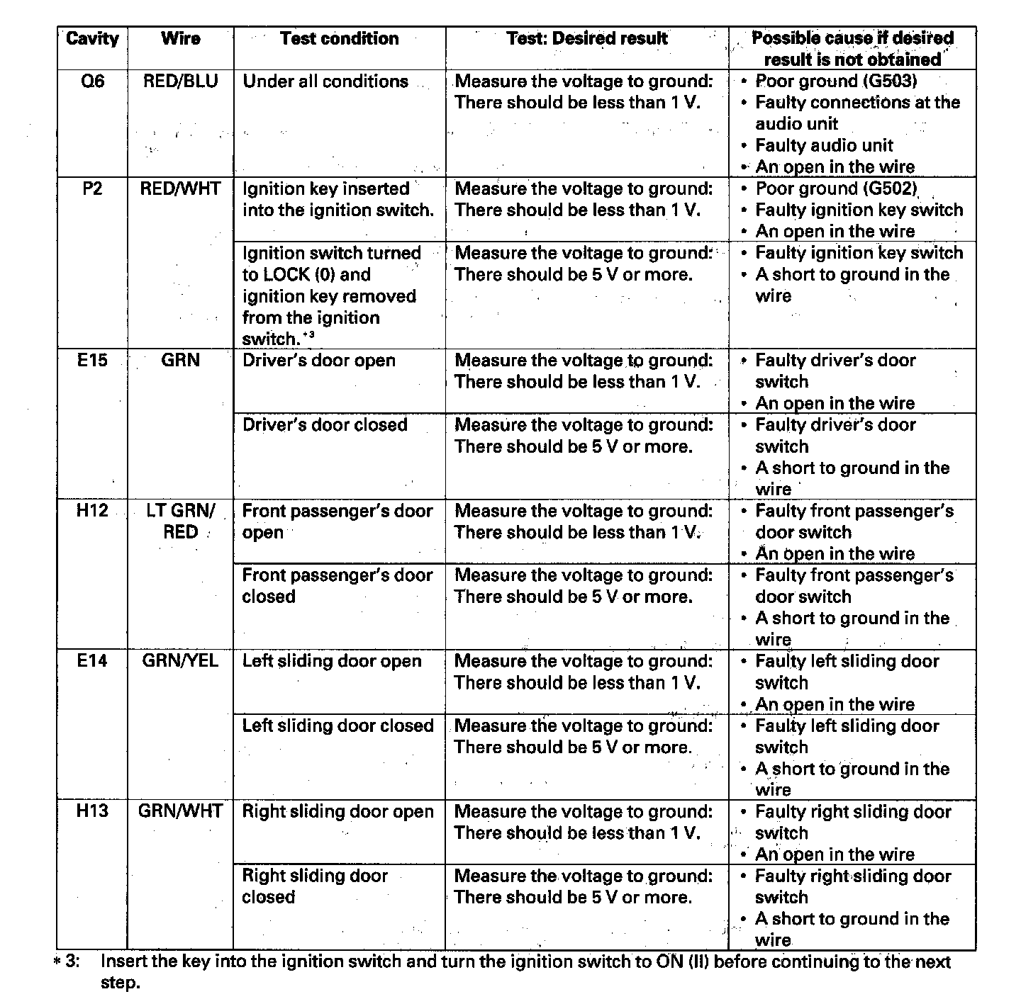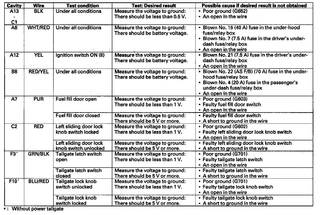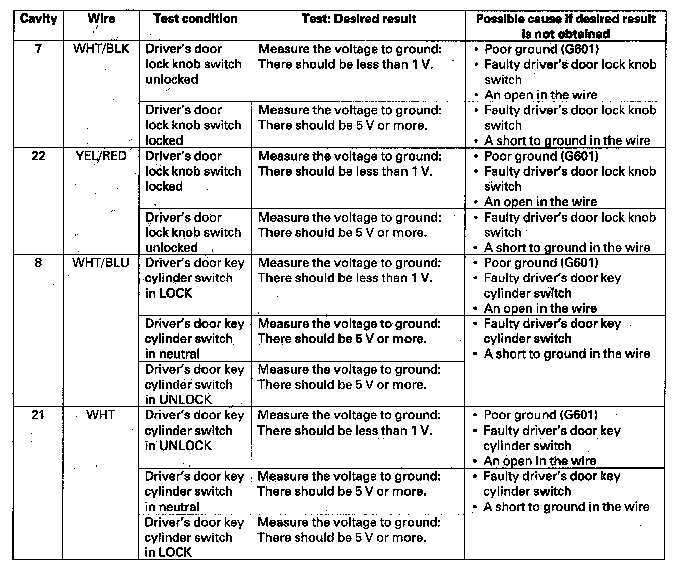 Control Unit Input TestNOTE: Before troubleshooting the keyless entry/security control system, troubleshoot the multiplex integrated control system first using B-CAN System Diagnosis Test Mode A. Make sure the ignition switch to LOCK (0) before troubleshooting the driver's under-dash fuse/relay box.