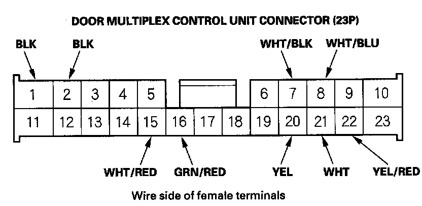 24. Reconnect the 23P connector to the power window master switch (door multiplex control unit). Turn the ignition switch to ON (II) and make these input tests at the connectors.