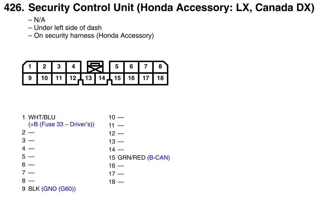 Security Control Unit Connector View (Honda Accessory: LX, Canada DX)