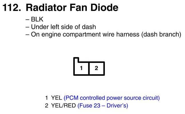 View 112 - Radiator Fan Diode Connector View