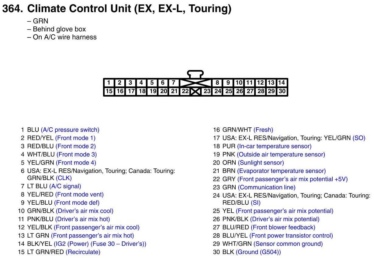 Climate Control Unit Connector View (EX, EX-L, Touring)