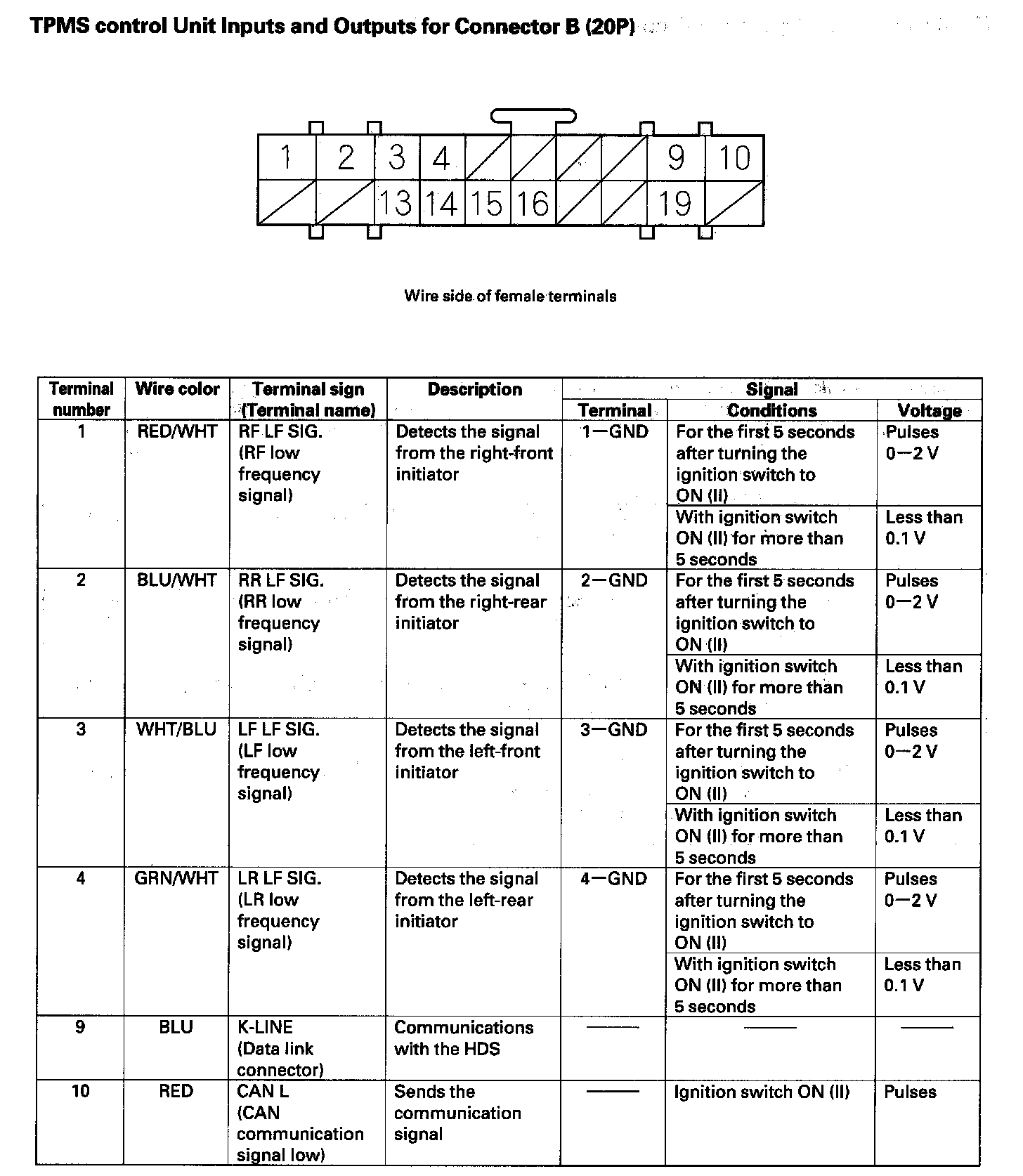 TPMS Control Unit Inputs And Outputs For Connector B (20P) (Part 1):