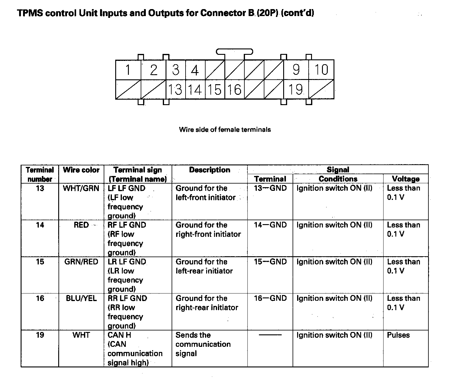 TPMS Control Unit Inputs And Outputs For Connector B (20P) (Part 2):
