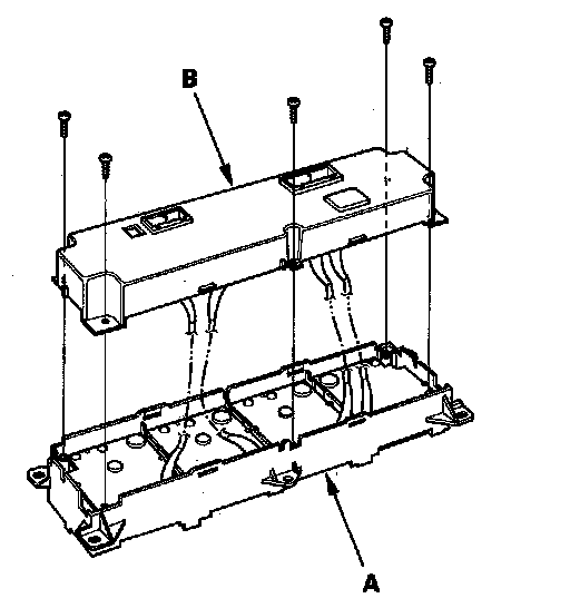2. Remove the self-tapping screws, then carefully separate the A/C control panel display (A) from the control panel (B). Do not kink or pull on the wires between the display and the control panel. Do not touch the electronic components on the printed circuit board in the control panel.