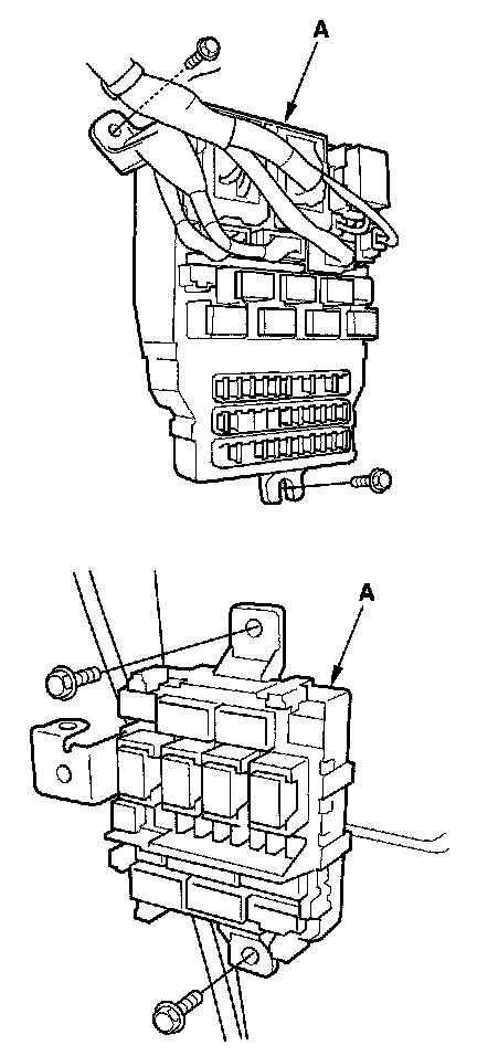 4. Disconnect the connectors from the fuse side of the driver's (or passenger's) under-dash fuse/relay box (A).