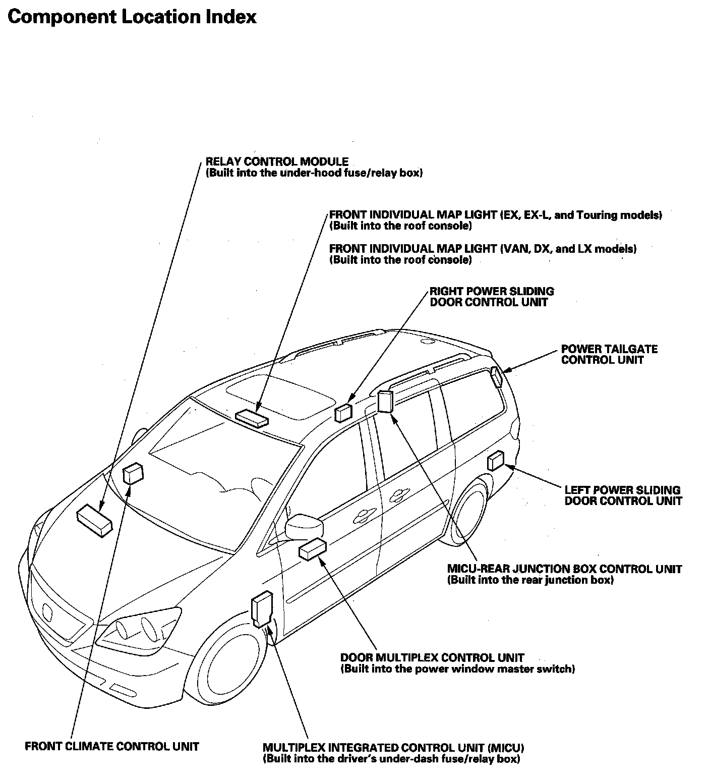 Multiplex Integrated Control System Component Location Index: