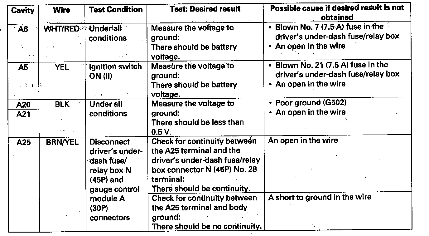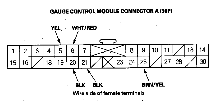 4. Reconnect connector A to the gauge control module, and make these input tests at the connector.