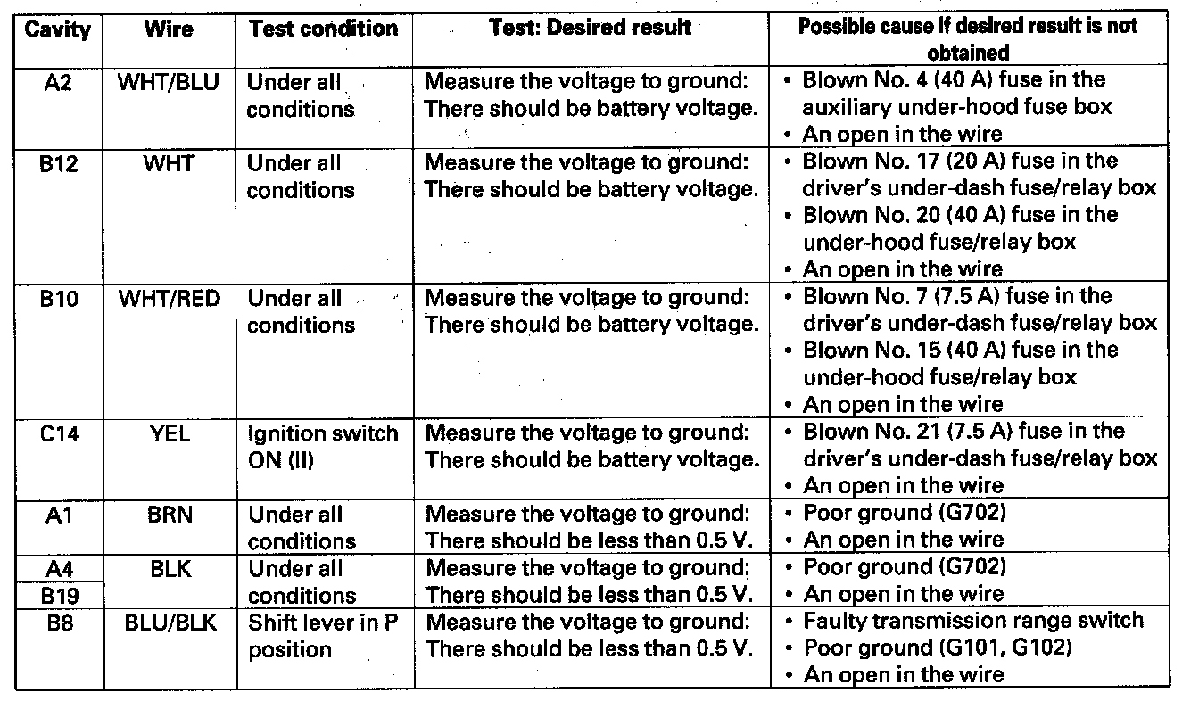 5. With the connectors still disconnected, make these input tests at the connectors.