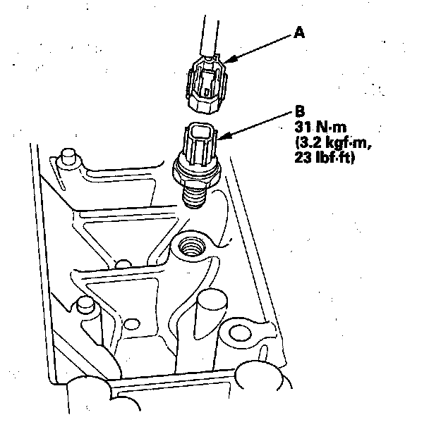 3. Disconnect the knock sensor 1P connector (A), then remove the knock sensor (B).