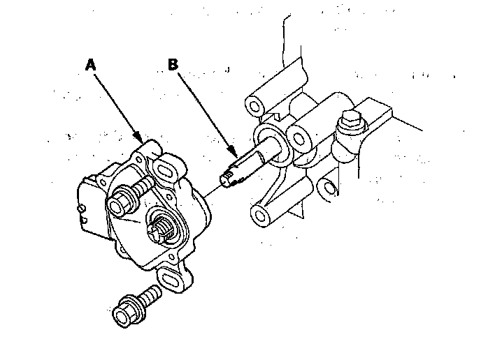 14. Install the transmission range switch (A) gently over the selector control shaft (B), and install the bolts loosely.