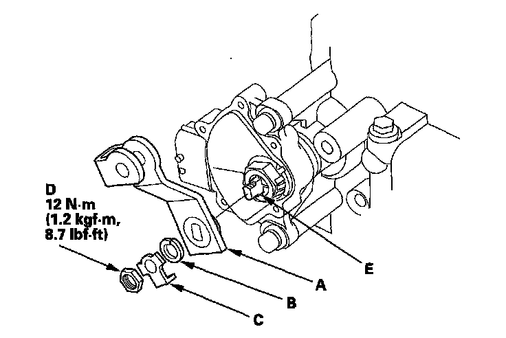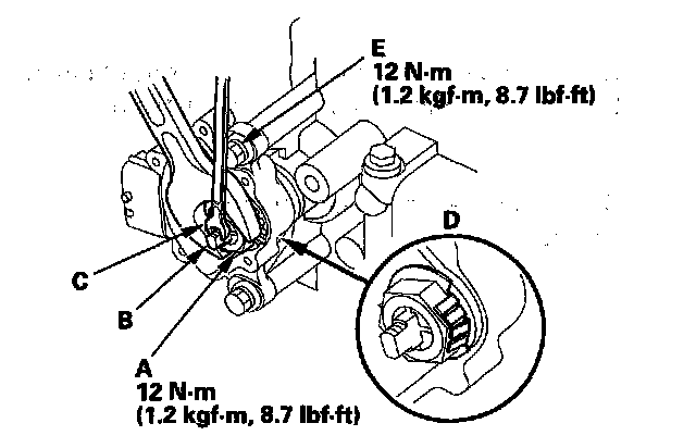 17. Tighten the bolts (E) to 12 Nm (1.2 kgf-m, 8.7 lbf-ft) securing the transmission range switch.